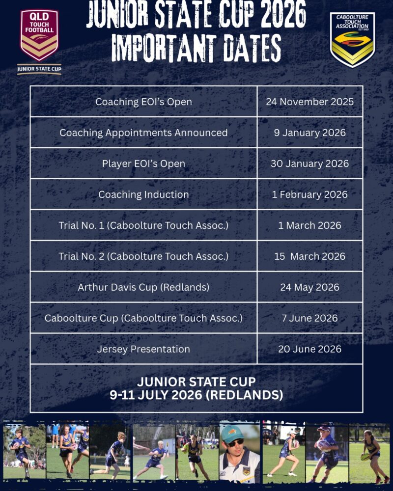 Stay tuned for information on Junior State Cup 2026 via Queensland Touch Football at https://juniorstatecup.qldtouch.com.au/