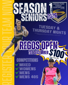 Player registration is via MySideline and you can search for your team using the Team Name (choose the team with the Caboolture Touch logo beside it) on the Touch Football Australia website: